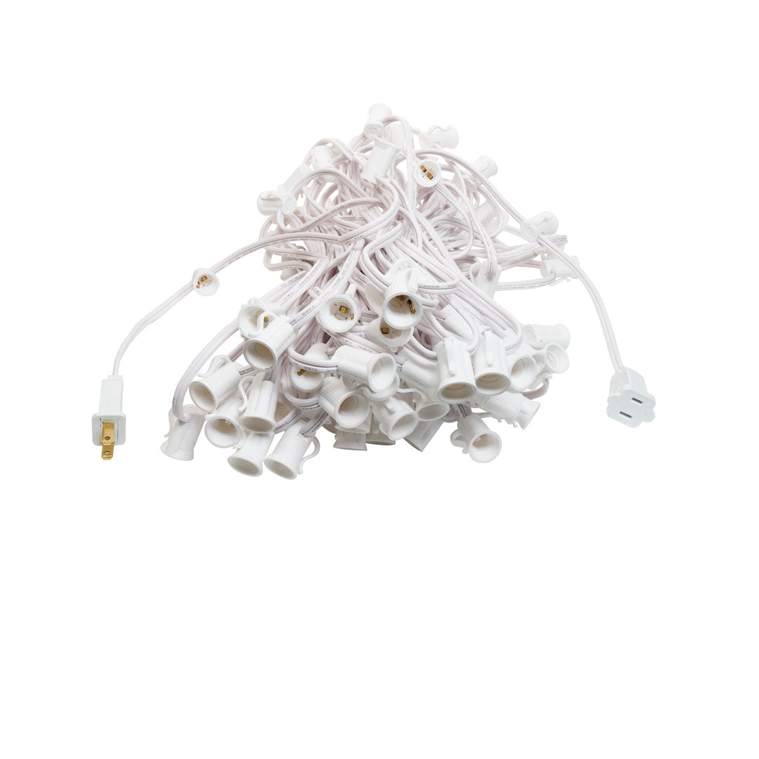 Designed for durability, this commercial grade wire boasts thick insulation, ensuring your lights shine bright even in rain or snow. Ideal for outdoor use, the inbuilt drainage system prevents water pooling and allows for ventilation, further enhancing longevity. E12 Base wire is suitable for C7 & G20 bulbs.