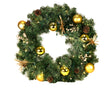An abundance of gold and silver embellishments make this decor stand out, especially when combined with warm white commercial grade mini-lights woven throughout. The series includes gold ornaments (frosted and glossy), silver berries, other gold accents, and natural pinecones. Three types of needles are used providing a very natural looking wreath.