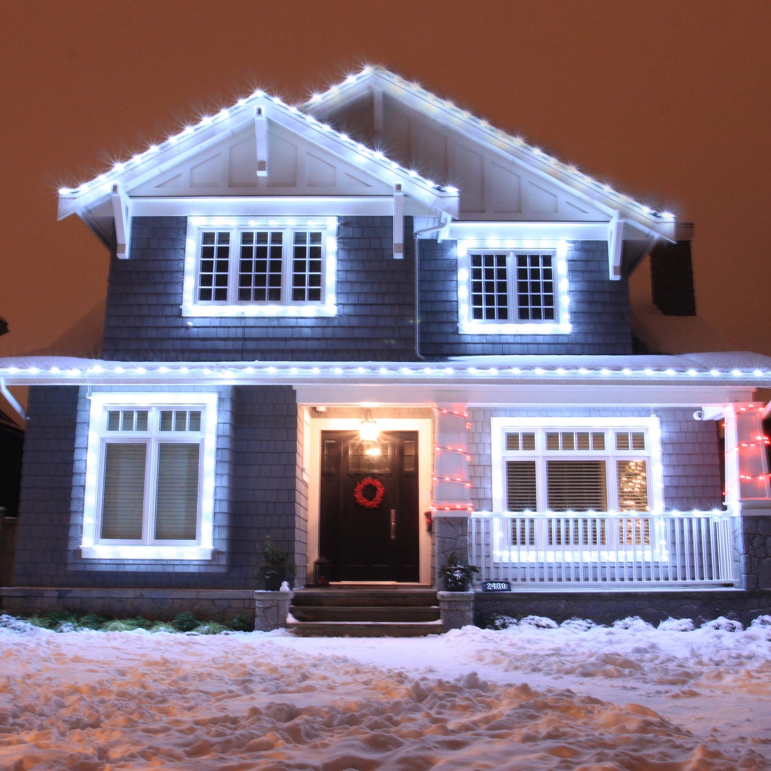 Bring pro-level holiday sparkle to any home with this 200 ft C9 Roofline Bundle. Built for clean, continuous runs along eaves and gutters, it pairs traditional C9 Faceted bulbs with durable, weather-ready components. The included E17 power cord keeps every bulb snug and consistent, while the 15 ft extension cord gives you flexible reach from the outlet to your first light without clutter. Multi Clips make setup quick and tidy, snapping neatly under shingles or onto gutters for a straight, polished look that stays put in winter weather.