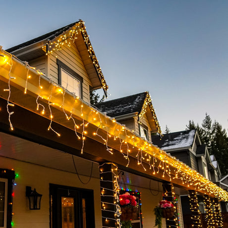 Perfect for rooflines. Cascading Christmas LED lights. Winterproof.