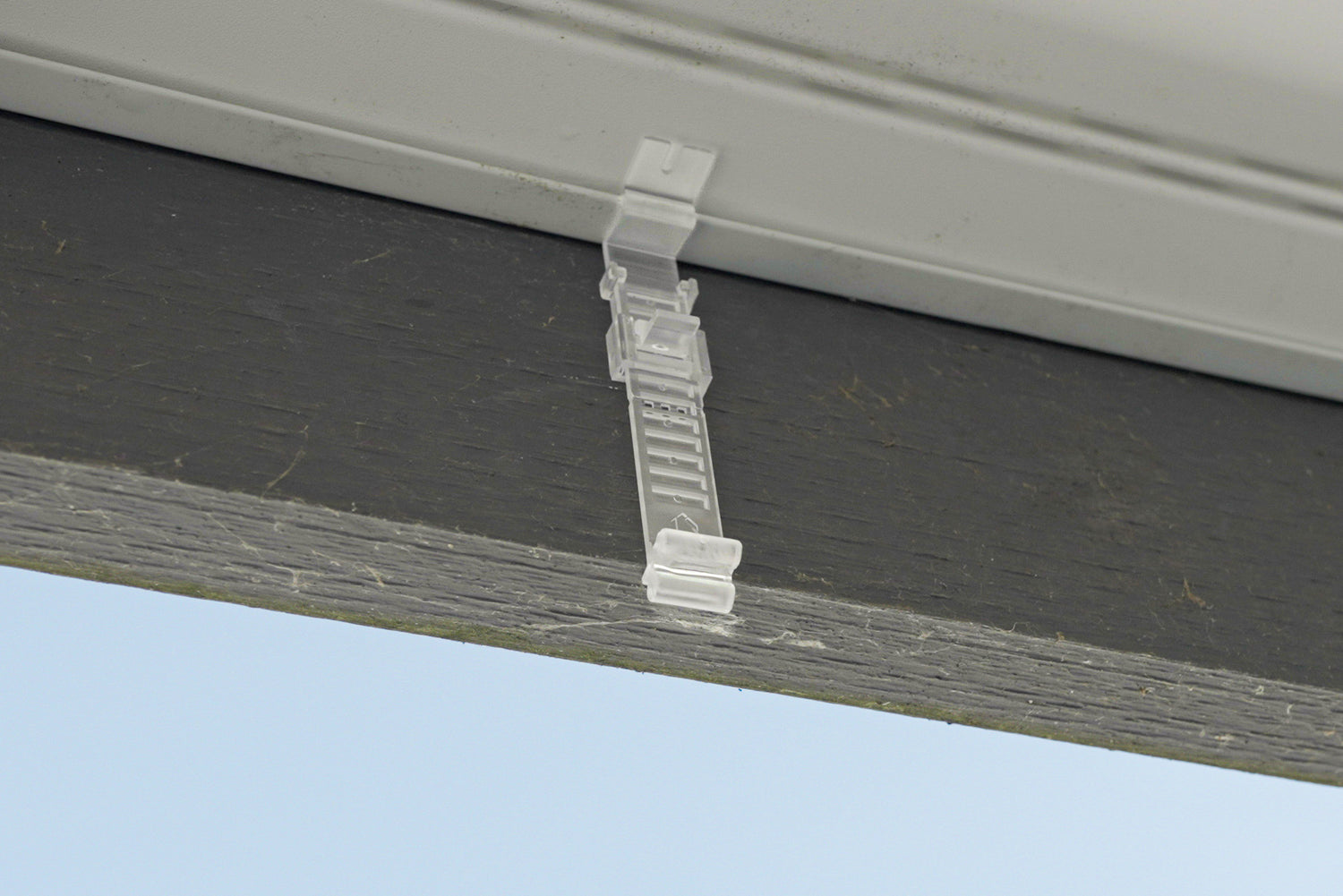 The Chromaglow Soffit Clip, designed for a non-invasive and adjustable attachment of Chromaglow tracks, features an adjustable mechanism to control the position of tracks below the soffit. It adapts to various soffits, ensuring a consistent finish. Made from durable clear polycarbonate, it seamlessly blends in and offers support without the need for screws, meaning installation is very quick and easy. Tracks can be attached in two orientations, allowing lights to face either outwards or downwards.