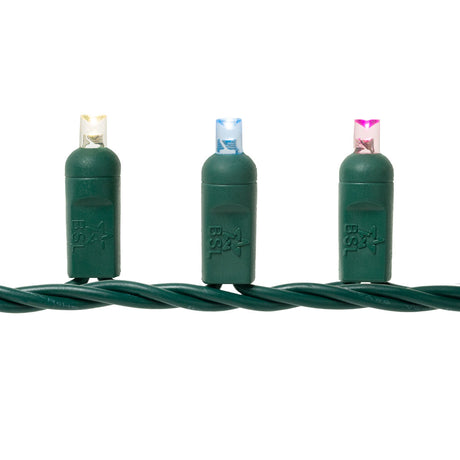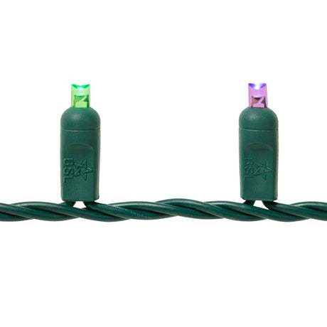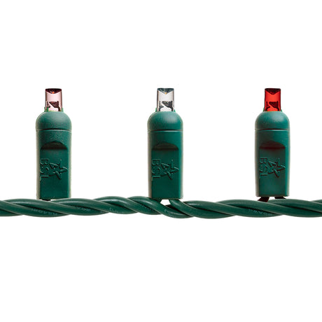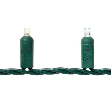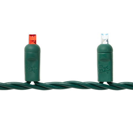 Outdoor rated red and pure white mini lights 25 ft green wire.