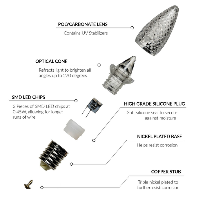 Our custom-designed optical cone maximizes brightness, allowing the bulb to operate efficiently at just 0.45 watts. This means you get powerful light output while using less energy and extending bulb lifespan.