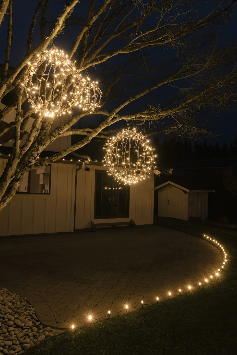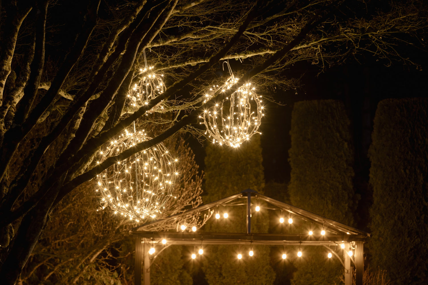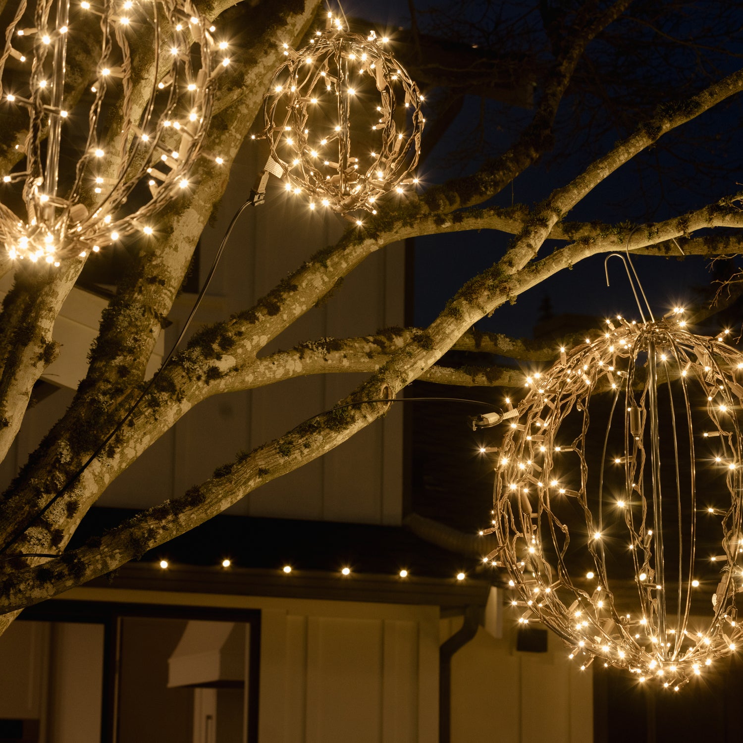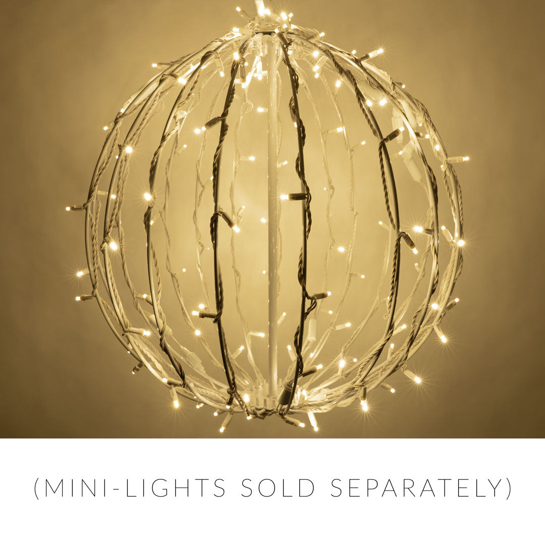 Lighted spheres give an elegant yet captivating look that is relatively new in decorative lighting. They provide a terrific and economical way to light trees, and can be used on their own or in conjunction with other lights and decorations.Designed to be adorned with lights, you can decorate trees and other spaces without having the same storage issues as with traditional ornaments.Customize your display by choosing from our Mini-Lights range (sold separately).