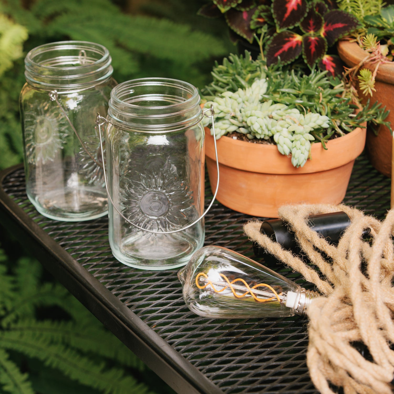 Illuminate your backyard or light up an event with these tasteful decorative mason jar lanterns! Featuring a sunflower imprinted on the glass, these are perfect for adding some sparkle to your patio, balcony, or yard, or even a small nook in your home.