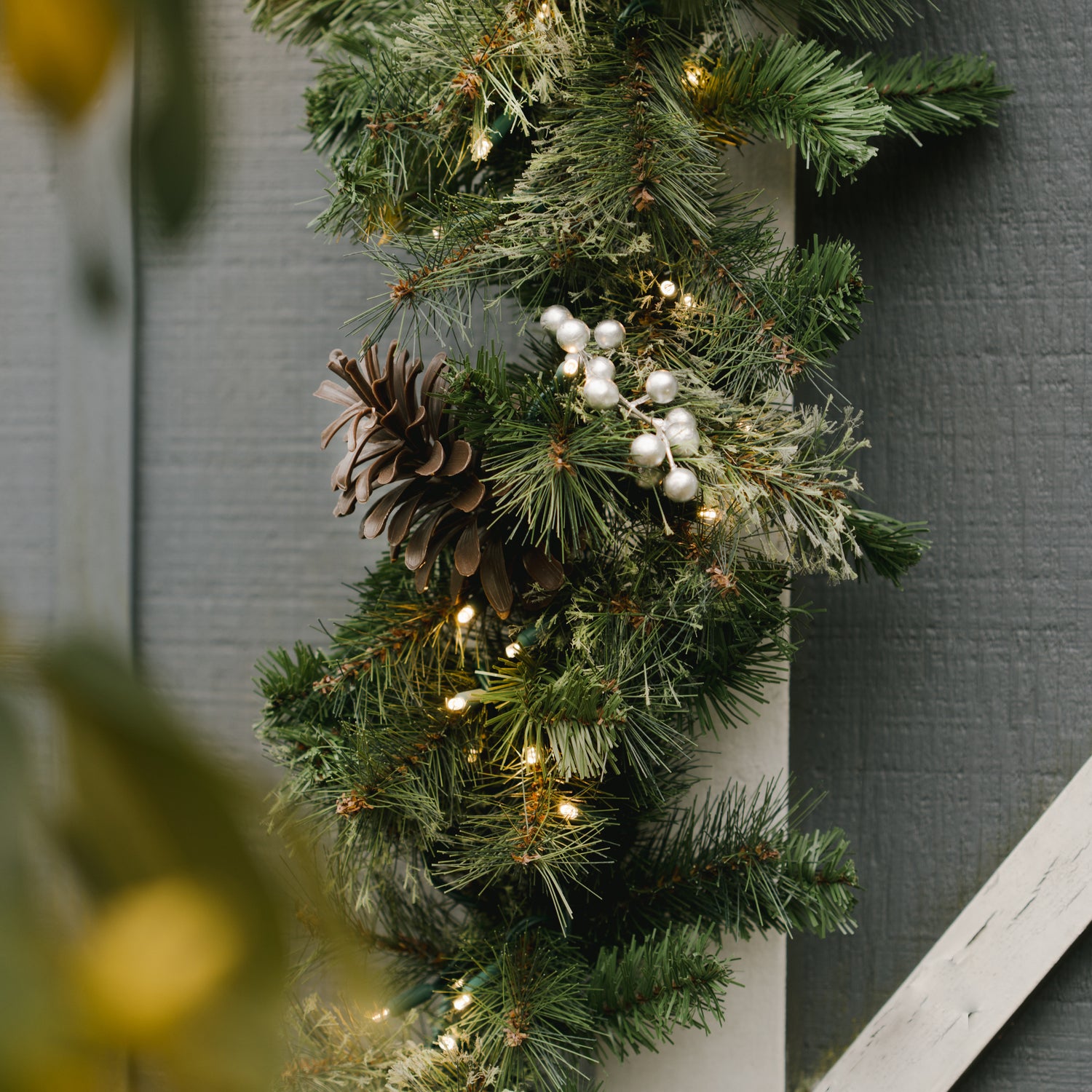 This classic Lit Garland features berries, pine cones, and Warm White Mini Lights.Lush commercial grade greenery provide a natural looking garland.Garlands are end to end connectable. A String Light Adapter is required to plug the mini lights into power.