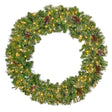 A classic wreath featuring realistic greenery, red berries, and pine cones wrapped in our beautiful Warm White 5mm mini-lights. Generously embellished with red berries and pine cones, this decor stands out, especially when combined with the Warm White commercial grade mini-lights woven throughout. Three types of needles are used providing a very natural looking wreath. Bolts using 1/2 inch nuts connect the sections together providing a very secure and rigid round shape.