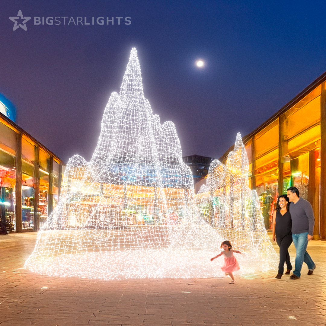 The iceberg is one of nature's most beautiful artforms and this lighted sculpture adds a bit of holiday magic to it. It is 12 feet tall and 12 feet wide, but additional sizes and shapes are available upon request. Icebergs are wonderful for backdrops or lighting up difficult-to-decorate and dark spaces. Combine the iceberg with the penguin or polar bear for an even more memorable holiday light display.Any LED colour is available although pure-white is the most popular. Optionally have 15% of the LEDs twinkle in pure-white at no added cost.