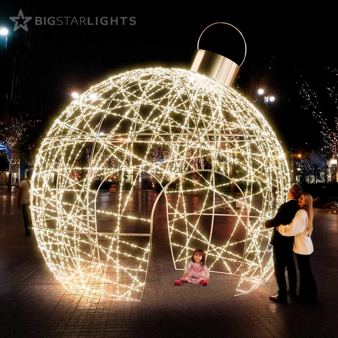 The walkthrough ornament is a classic design where people get to surround themselves with beautiful lights. It makes for a memorable backdrop, Santa display, or just a beautiful centerpiece to traditional decorative lights.
